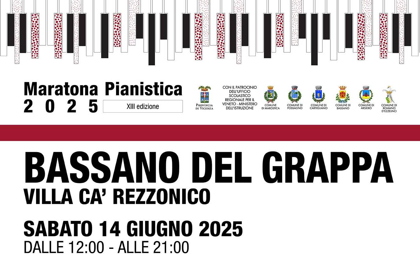 INTRATTENIMENTO53a Maratona Pianistica animata da centinaia di musicisti provenienti da Vicenza, Alonte, Grantorto, Rosà, Asiago, Paese, Pianezze, Casale sul Sile, Ozzano dell’Emilia, Romano d’Ezzelino, Bassano del Grappa, Solagna. Dagli allievi alle prime note ai professionisti che desiderano proporre i loro lavori discografici e programmi da concerto, quest’anno hanno aderito più di 900 musicisti, nelle sette giornate di musica previste. Si tratta di evento atto a creare una rete di collaborazione tra le diverse realtà musicali del territorio, per conoscersi, confrontarsi, per partecipare insieme ad un unico spettacolo senza competizione ma con spirito di collaborazione e di condivisione di un momento di festa, arte e musica. Ideazione e organizzazione di Luigi Ferro. Info 347-3474992 [email protected]
